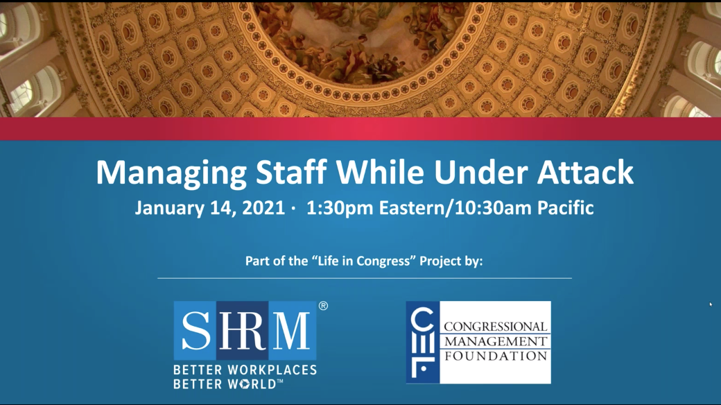 As part of the "Life in Congress" project, CMF and SHRM regularly conduct training programs on workplace topics.
